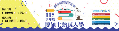 115學年度博碩士班甄試入學招生考試,報名日期自114年10月2日至10月23日。