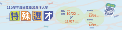 115學年度特殊選才招生簡章公告,報名日期自114年10月22日至11月7日。
